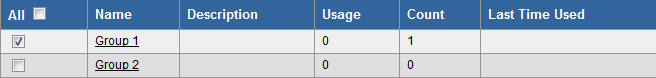 This section displays a summary of existing groups and their attributes. Select a group by clicking the checkbox on the far left of the row.