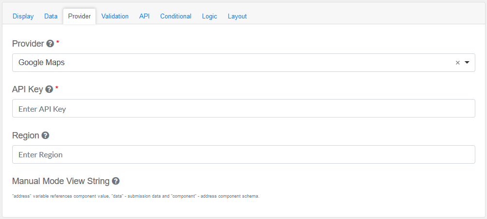 Drag and drop the Address Field element into the Mobile Editor, to open up the Address form.