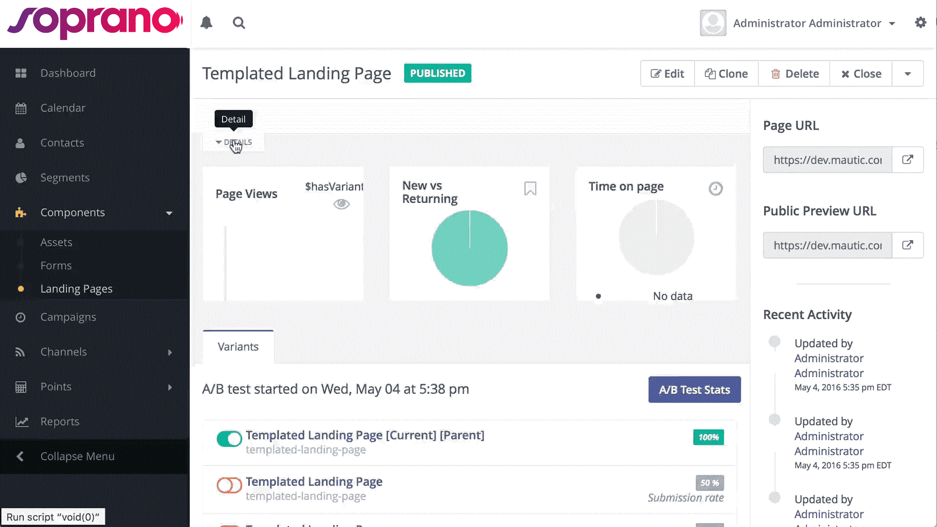 These pages allow Users to create an A2B testing environment, multilingual pages, and template pages unique to a variety of pre-defined templates.