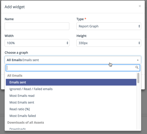 Each graph of every report is made available as a widget on the dashboard, allowing complete customization of the dashboard.