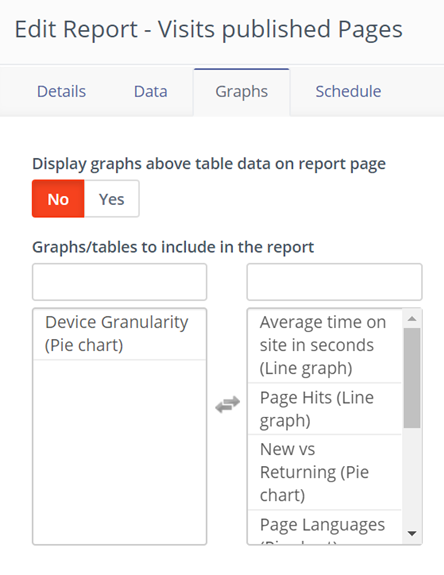 Some reports have graphs available. Select the graph desired from the list on the left. It will be moved to the right and will be part of the report.
