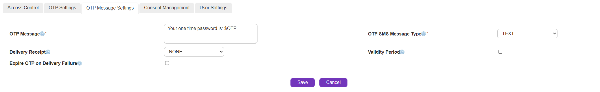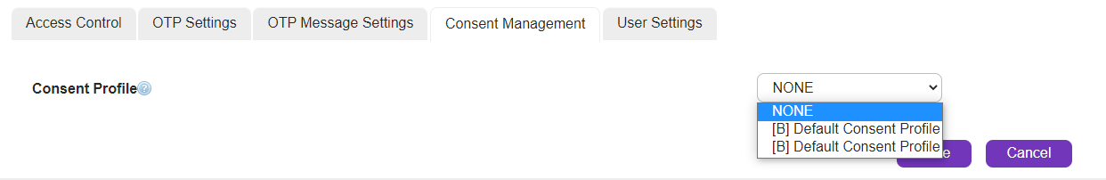 For Customer Administrators with the Consent Management Add-on, the Consent Profile can be selected that will be associated with your OTP Messages.