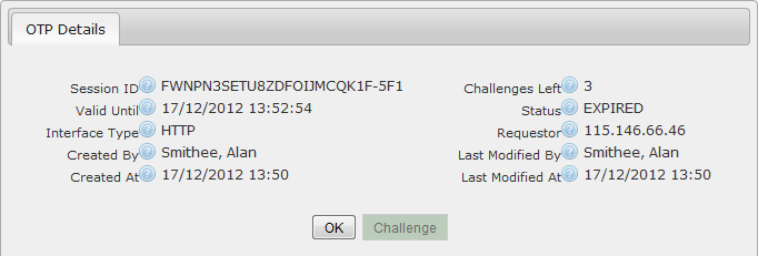 •REJECTED - the challenge was rejected as OTP did not match
