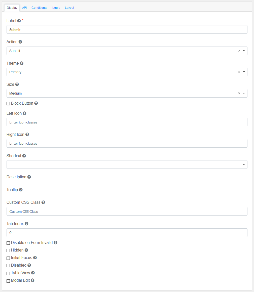 Drag and drop the Button Field element into the Mobile Editor, to open up the Button form.