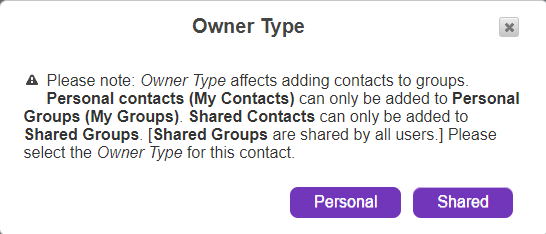 •Click the desired 'Owner Type' for the new group - 'Personal' or 'Shared'.
