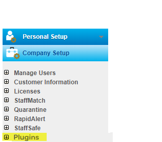 Navigate to 'Company Setup > Manage Users > Plugins'. |