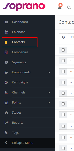 Below is what a typical list of Standard Contacts look like:
