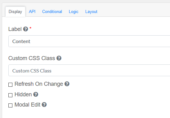 This section provides a map of Content attributes for a component's input element. Note: Attributes provided by other component settings or other attributes generated by form.io take precedence over attributes in this grid.