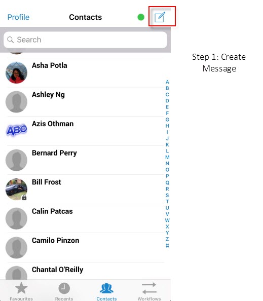 •Tap the new message icon in the top right corner.