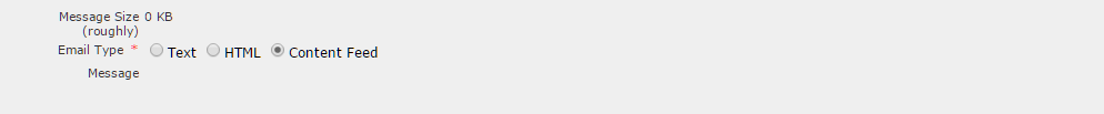 The message tab is where you define that you’d like this message to originate from a feed. Select the Content Feed radio button, and then in the drop down box select the RSS Feed you would like to assign to this message.