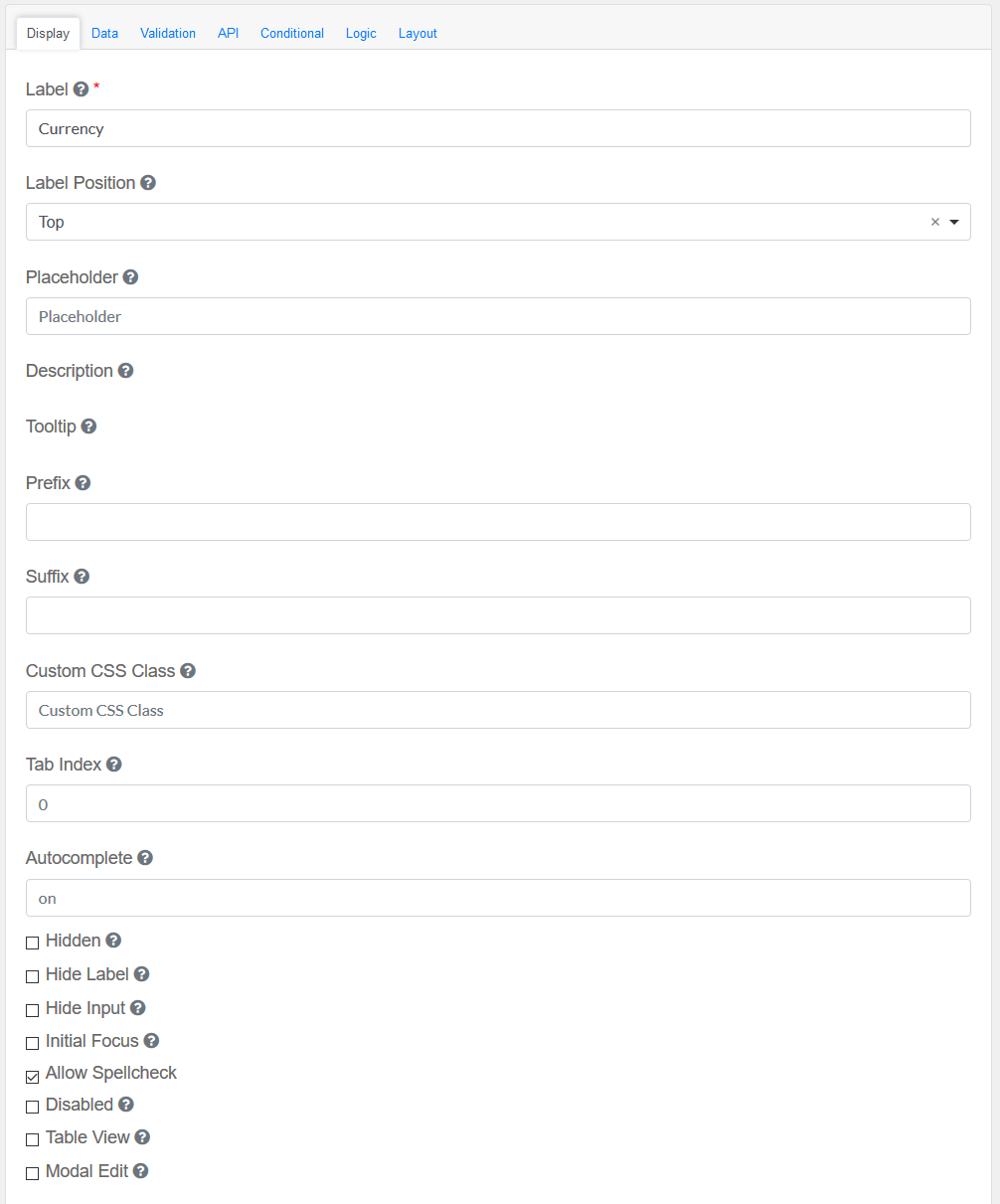 Allow Spellcheck : Allow spellcheck within the Currency Field.
