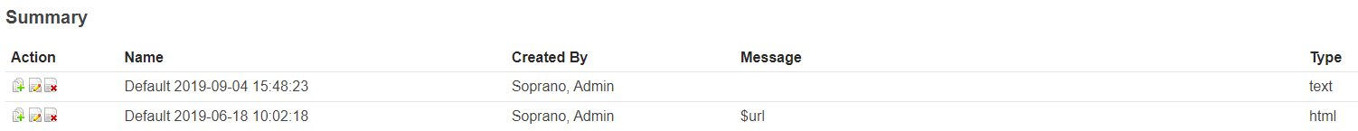 Choose a template by clicking its name in the 'SMS Standard Template Summary' screen.