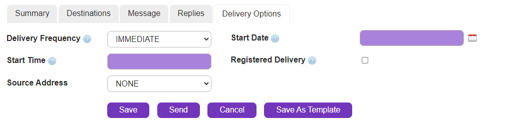 This field can be pre-populated by flagging the 'Registered Delivery' check box in Company SMS Preferences (Customer Administrators only).