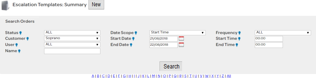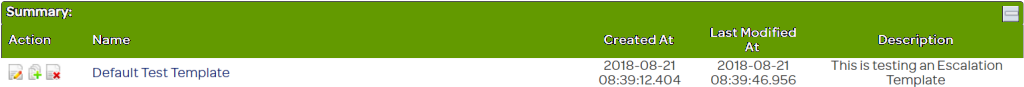 Once Escalation templates have been created a summary of all Escalation templates created are visible in the Escalation Templates: Summary page.