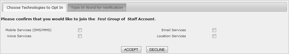 This section allows a contact to choose what type of messaging services to opt-in for.