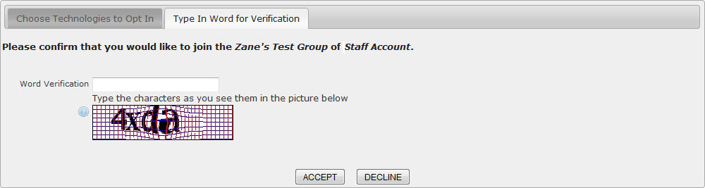 In order to confirm addition to the group, the contact must type the letters displayed and click 'Accept'. If they do not wish to join the group, they must click 'Decline'.