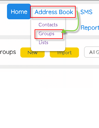 2. Click 'Show All Groups' in 'Address Book' drop-down menu at top of the interface. |