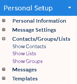 1. Click 'Show Groups' under 'Contacts/Groups/Lists' in 'Personal Setup' menu.