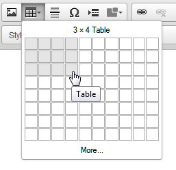 Select the number of rows and columns you want to include in your table and then click to insert it into the editor.
