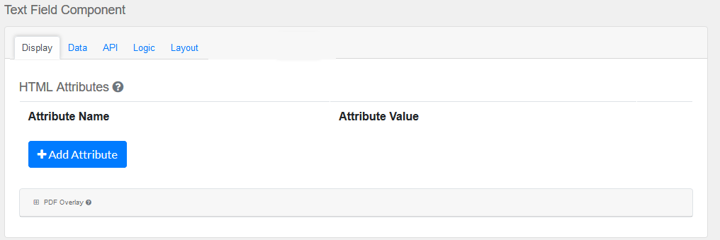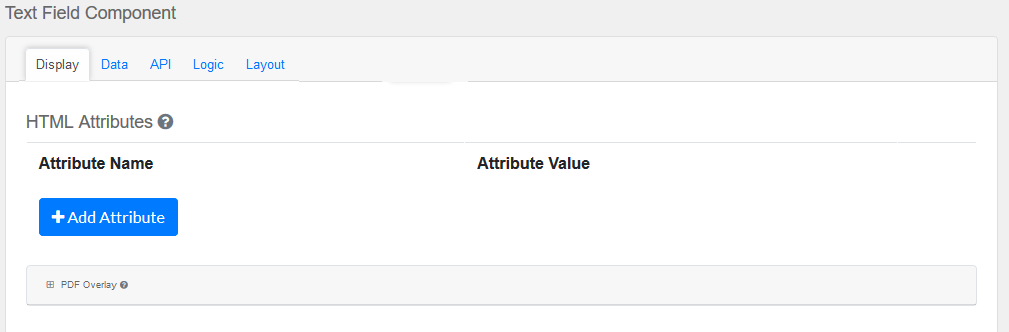 Note: Attributes provided by other component settings or other attributes generated by form.io take precedence over attributes in this grid.