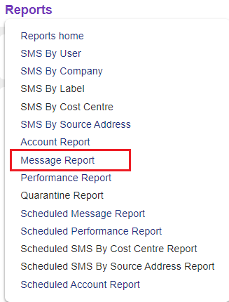 •Click the Reports tab at top of interface and select Message Report or Performance Report from the dropdown menu.