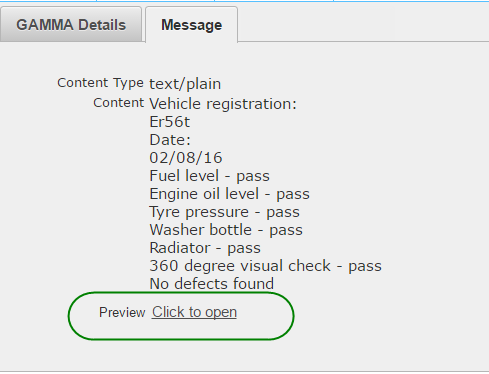 All of the message details will be displayed on screen.Clicking on the Message tab will display the content-type, content and preview. The preview would display the responses including images as shown below.
