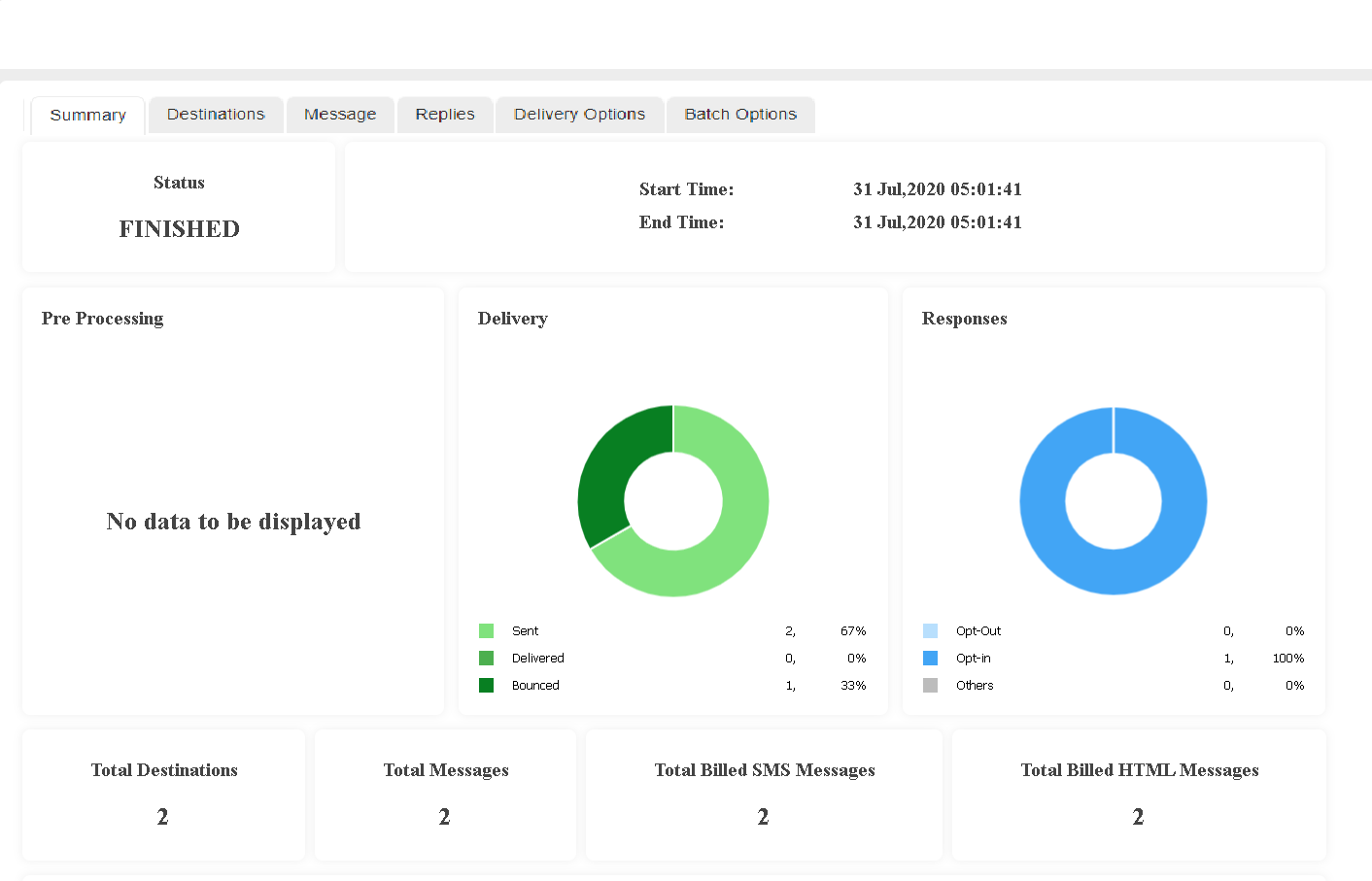 Users can now view an instant Report of the A2P messages sent via the GAMMA application. When sending a GAMMA A2P broadcast, once the message has been sent, the user is presented with a broadcast reporting/statistics page.