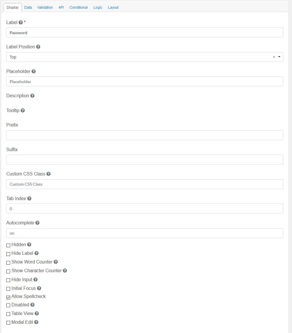 Drag and drop the Password Field element into the Mobile Editor, to open up the Password form.