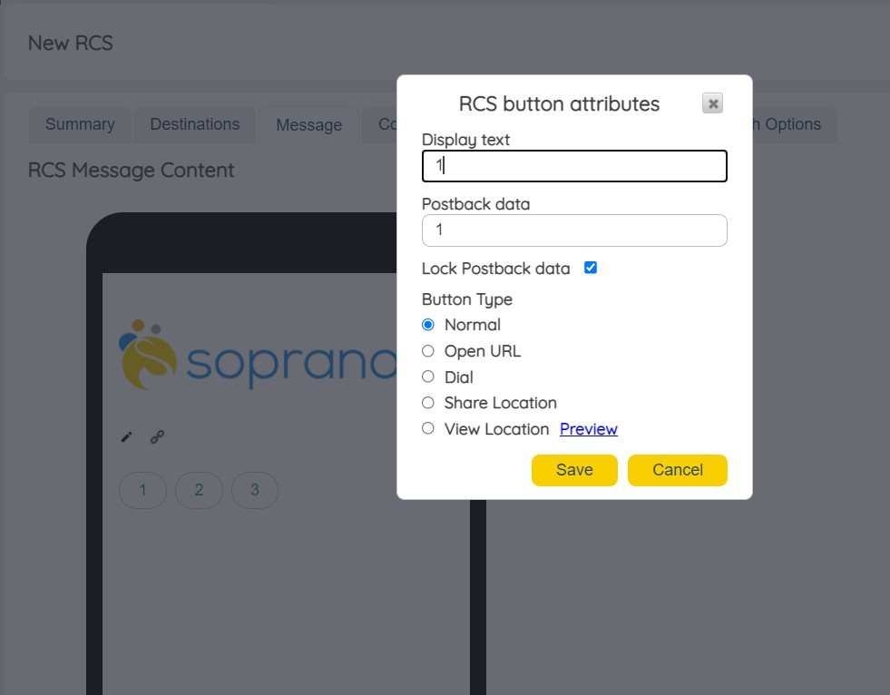 When framing an RCS Order, the buttons within the Order can be modified to allow Users to include Images, Video content etc.