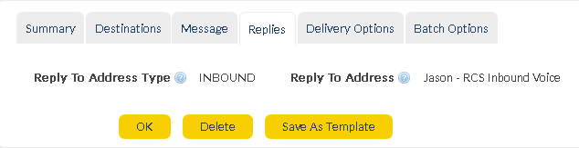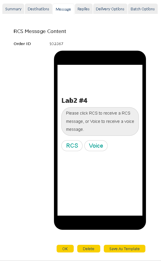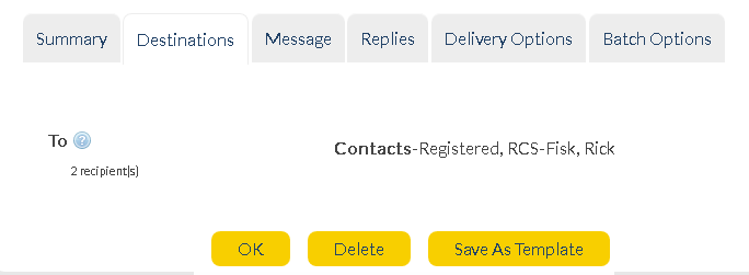 The destinations tab shows the number of and name of the various recipients of the RCS Order. |