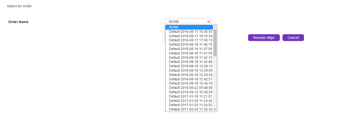 Select the order you want to wipe from the drop-down menu and click on