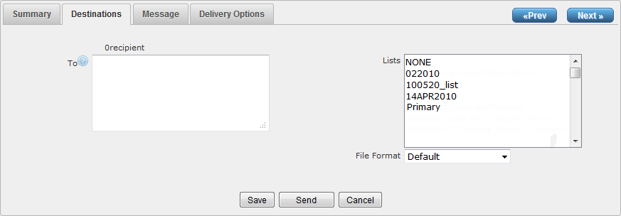 The field immediately below the drop-down box will display the available destination lists. Click the required items (hold 'Ctrl+click' to select multiple items).