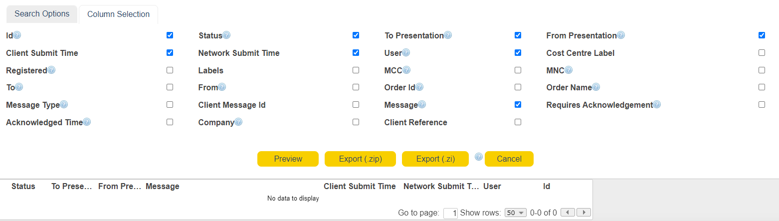 Display the first 1000 records on-screen. You can view the contents of a message in line by clicking on the dropdown arrow in the leftmost column.