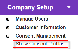 Click the 'Show Consent Profiles' link in 'Company Setup > 'Consent Management' to open the 'Consent Profile Summary' screen.