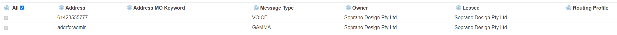 Select at least one address (number) to be used as the source for automated responses to MO keywords. When a customer receives one of the responses you have defined, e.g. 'Opt-In Response' message, it will be sent from one of these numbers.