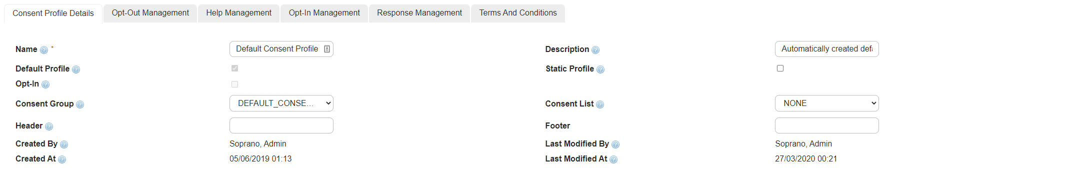Consent Profile Details
