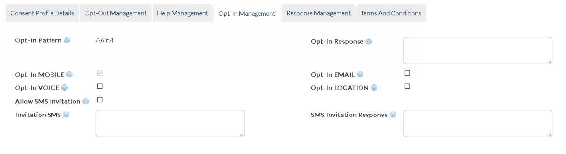 The pattern that will be matched for 'OPT-IN' requests (default opt out keyword is 'IN' [case insensitive]; however this can be reconfigured).