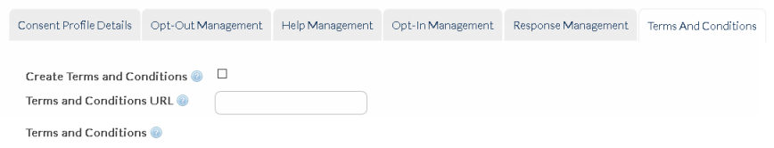 'Terms and Conditions' link can be used in Consent Management response messages.