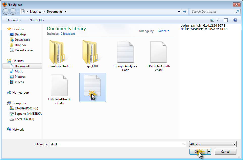 •Upload the list containing contacts