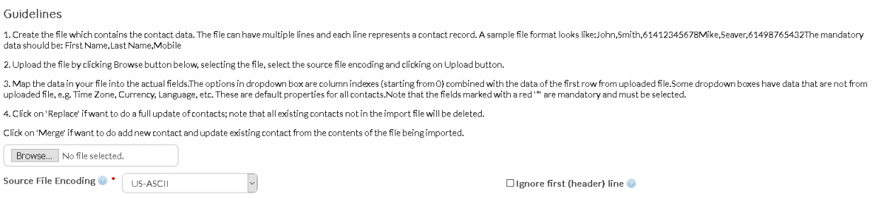 To use this feature, a file containing all the contact details you want to import must be prepared. Click here to learn how to create an import file.