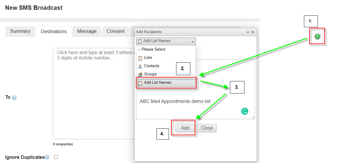 When AUTOMATIC list is processed by SMS Broadcast order, email is sent to the notification list configured under SMS Company Preference page. The email contains information of total recipients, total sent and total discarded.