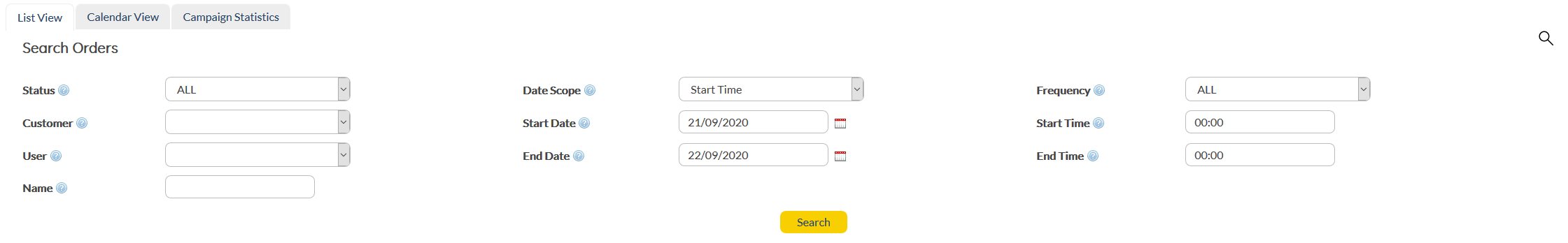 ![]() Day View The default page for Calender View shows the "day" view. This shows the complete set of Pending and completed Orders on a particular date. The default day is "today". Users use the
