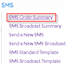 Click 'SMS' to open the 'SMS Order Summary' screen, the main hub for sending messages. |