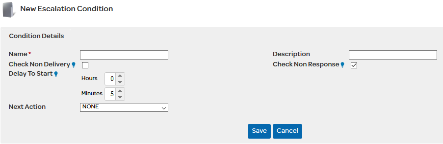 Escalation Actions can be configured by clicking on the icons in the "Actions" table.