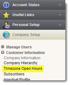 << Click to Display Table of Contents >> Customer Information - Timezone Open Hours |