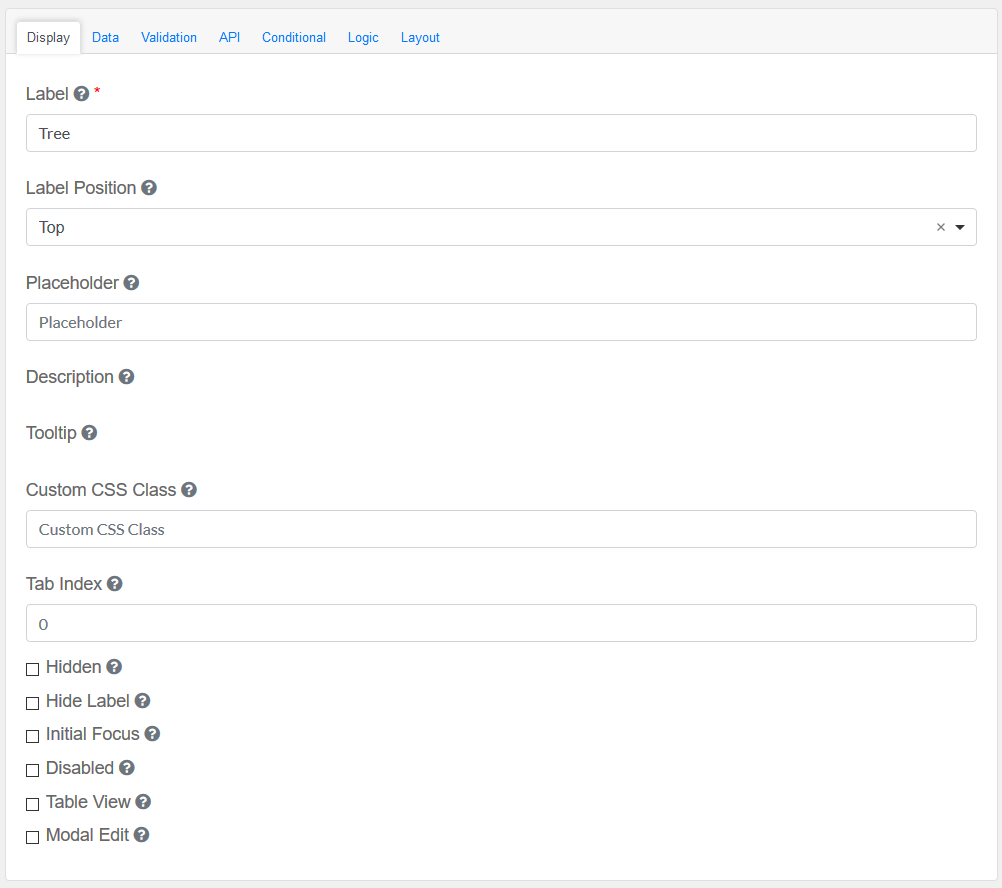 Drag and drop the Tree Field element into the Mobile Editor, to open up the Tree form.