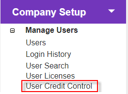 Manage user credit control details from here. |