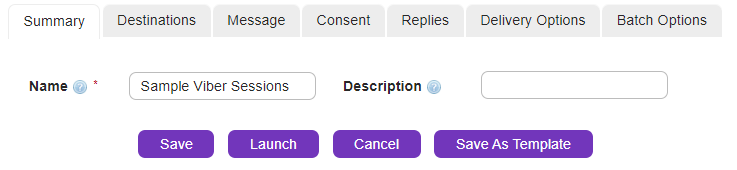Users can include recipients to the Viber Session Order. Either enter the destination (Contacts/ Groups / Lists) details manually or use the to load a pre-loaded Contact / Group / List.