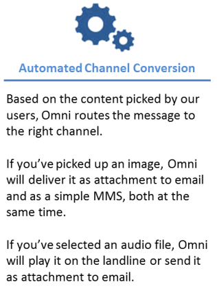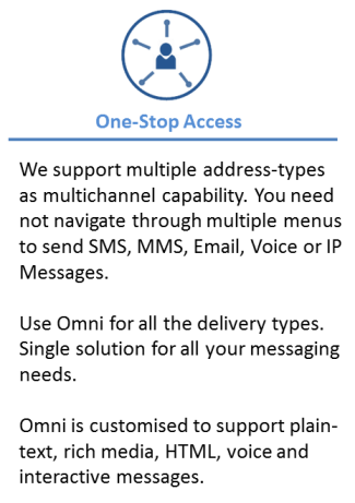 Omni offers ease of standard messaging mechanism along with intelligence of multi-channel delivery. Intelligence of Omni platform utilises existing SMS, MMS, IP Message, Email & Voice capabilities to build a one-stop solution for all users. Let's look at the benefits Omni brings in to your enterprise.