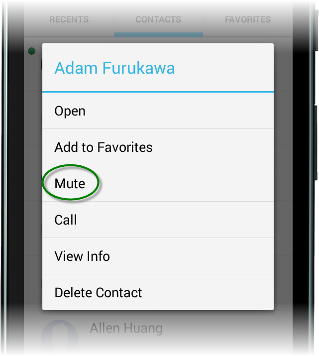 Mute/Unmute a contact
